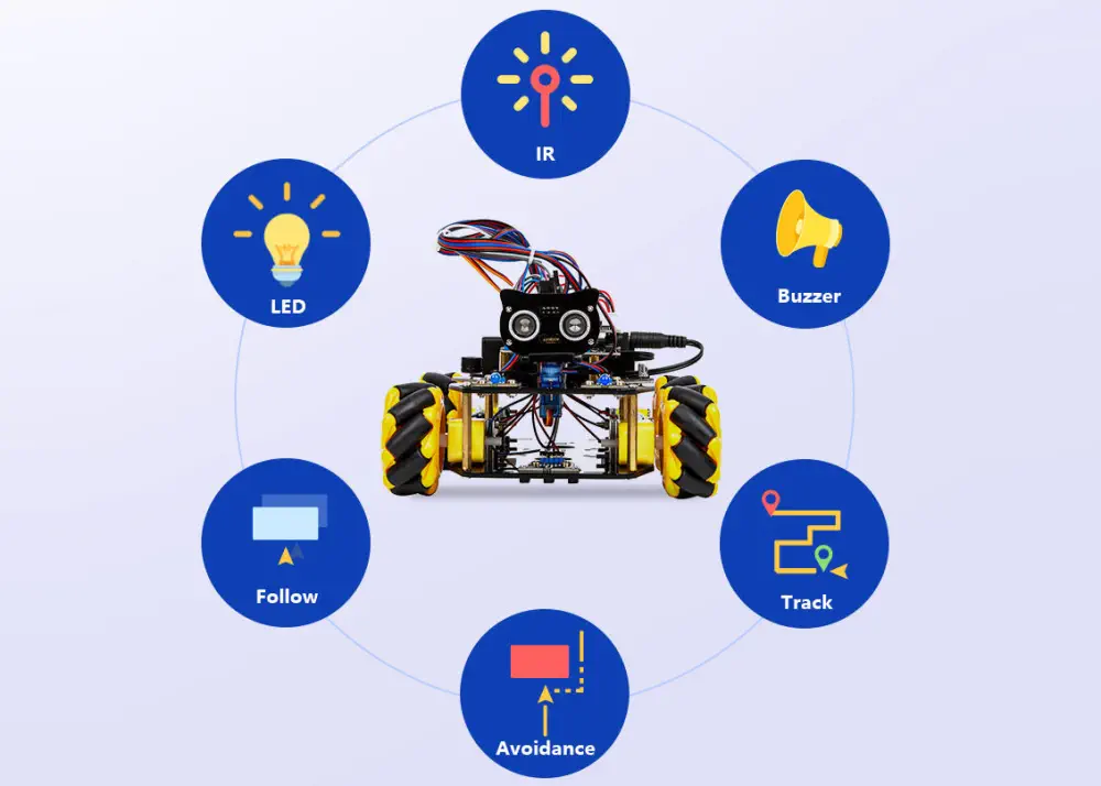 Equipped with an Ultrasonic Sensor, the robot car can detect obstacles and navigate its surroundings with precision. The 4WD Mecanum-wheel chassis provides versatile movement capabilities, enabling the robot to maneuver smoothly in various directions, making it ideal for complex navigation tasks.
