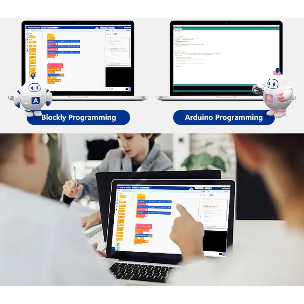 Central to the kit is the ESP32 Smart Car Kit, which serves as the brain of the robot, offering robust processing power and seamless integration with Arduino programming. This compatibility ensures that users can easily program and customize the robot's functions, fostering creativity and problem-solving skills in a STEM learning context.